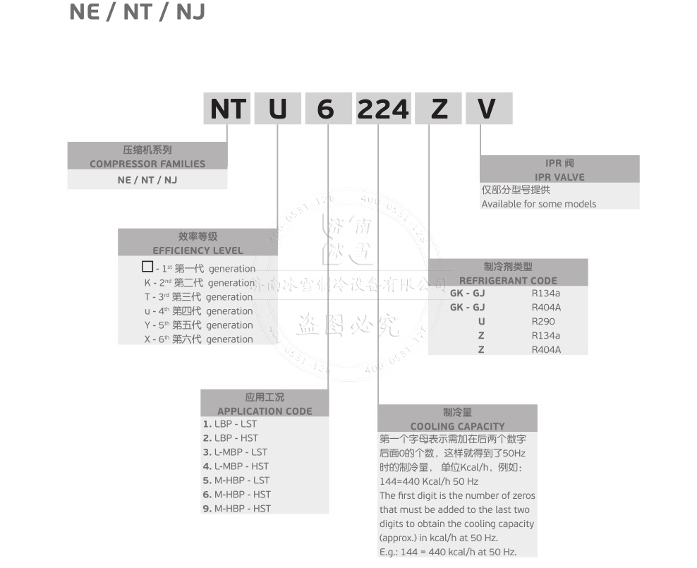 | NJ6220ZX | R-134a | 380-420V 50Hz / 440-480V 60Hz 3~ | 50Hz | HBP | 1 | 2.91 | 2.547 | 26.11 | ISO22 | RSIR | HST | ASHRAE46 |